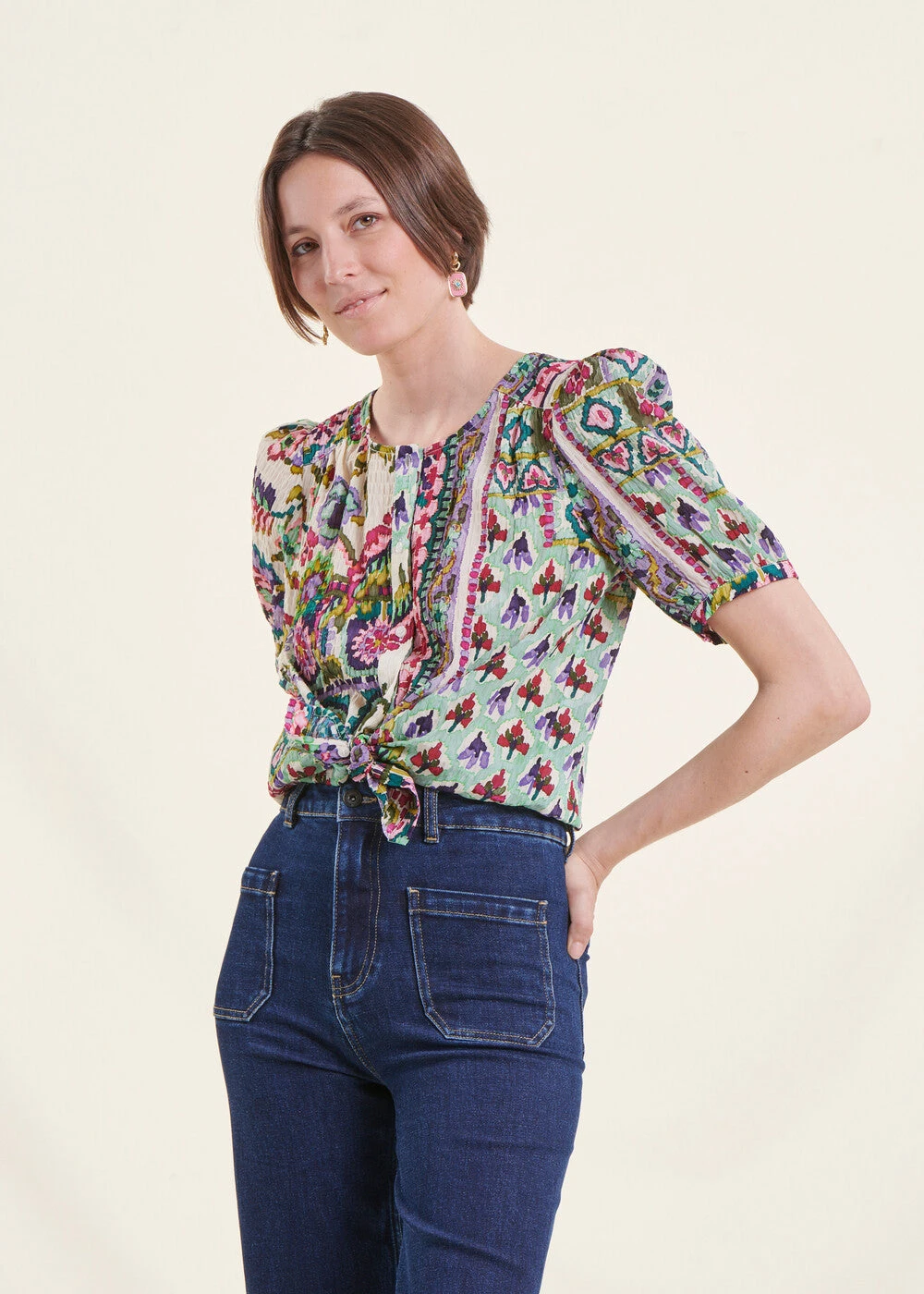 Chemise Vert D’eau à Fleurs Manches Courtes