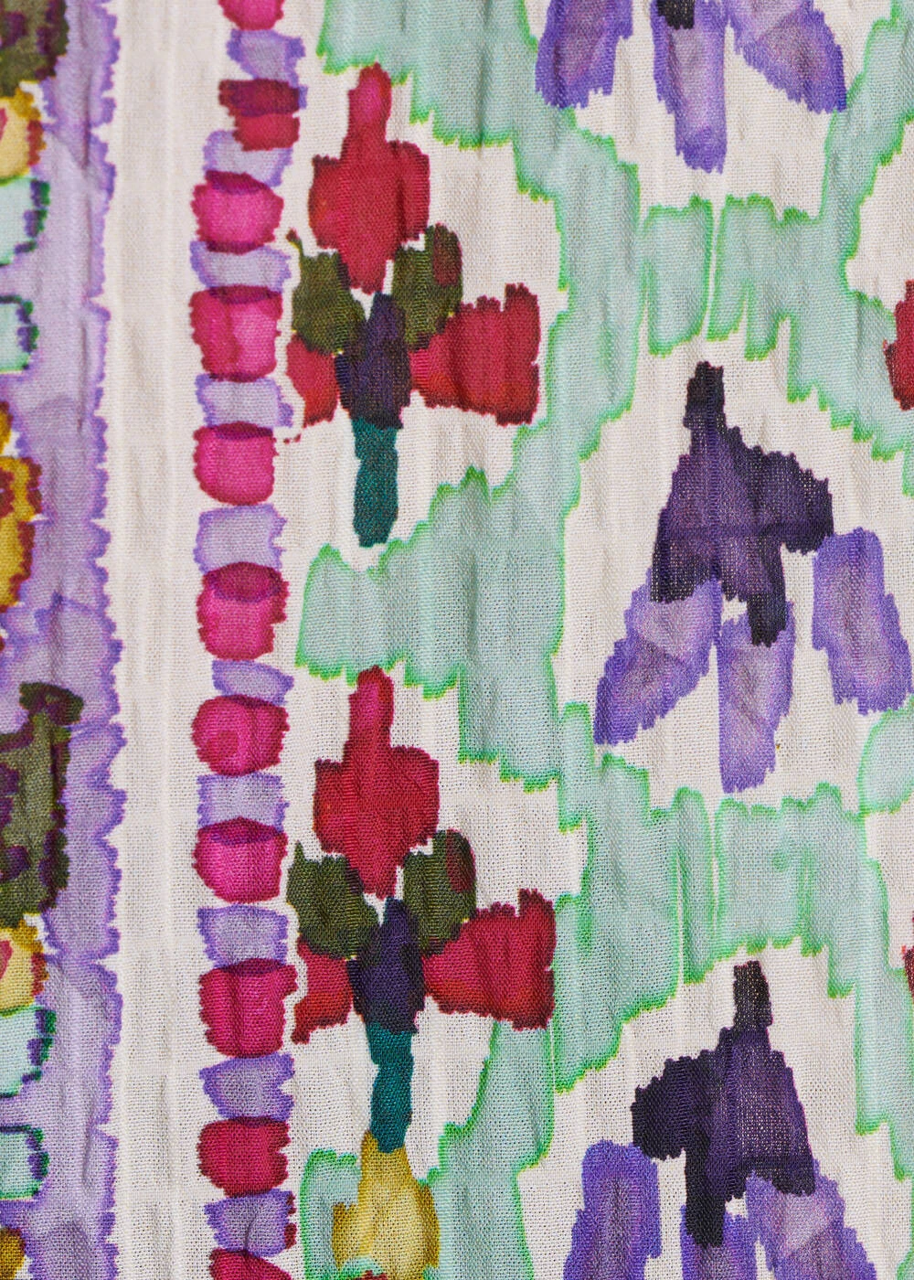 Robe Longue Cintrée Bohème Verte Manches Courtes Imprimé Ethnique
