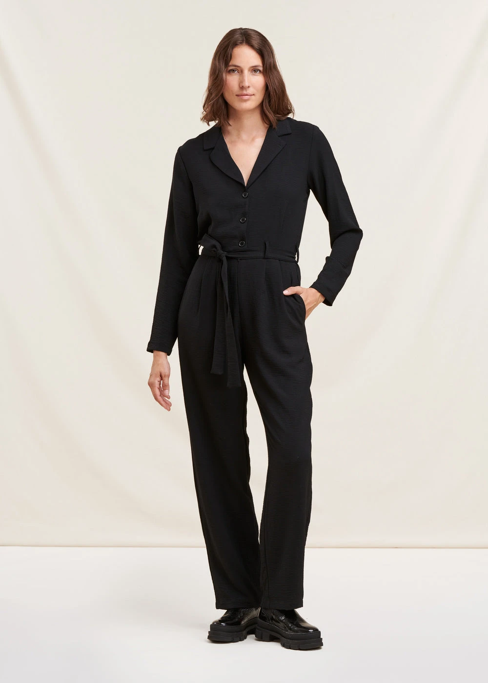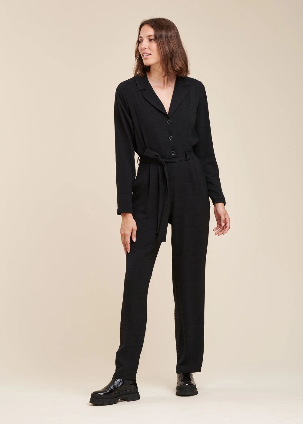 Combinaison Pantalon Noire Col Tailleur