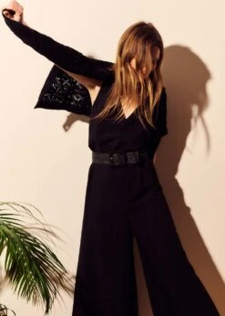Jupe Longue Fluide Noire Fleurie Taille élastique