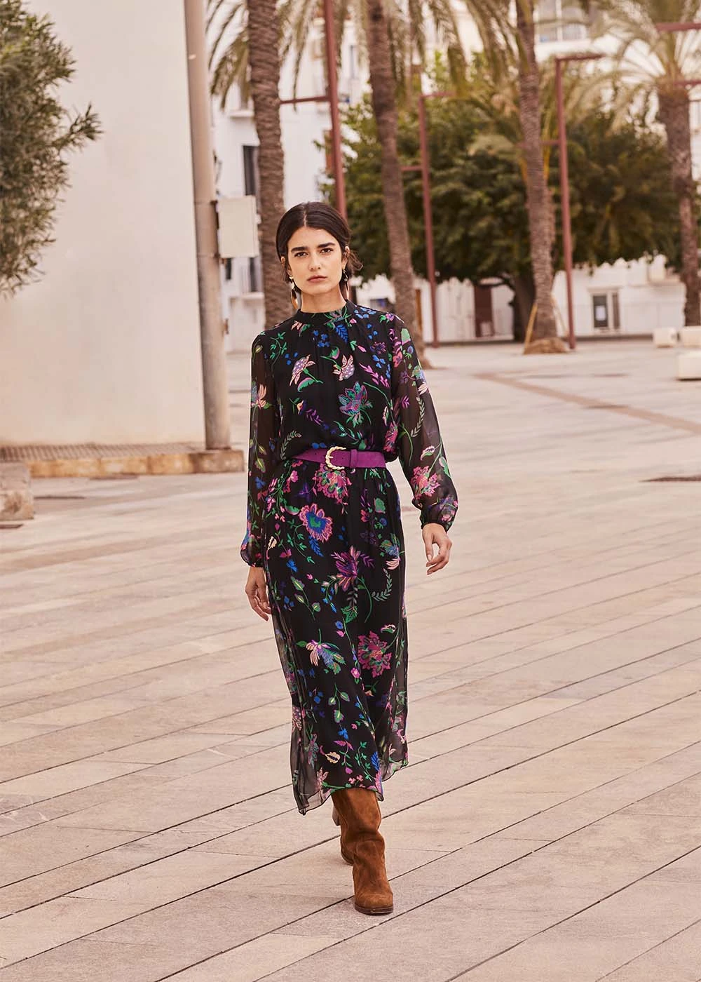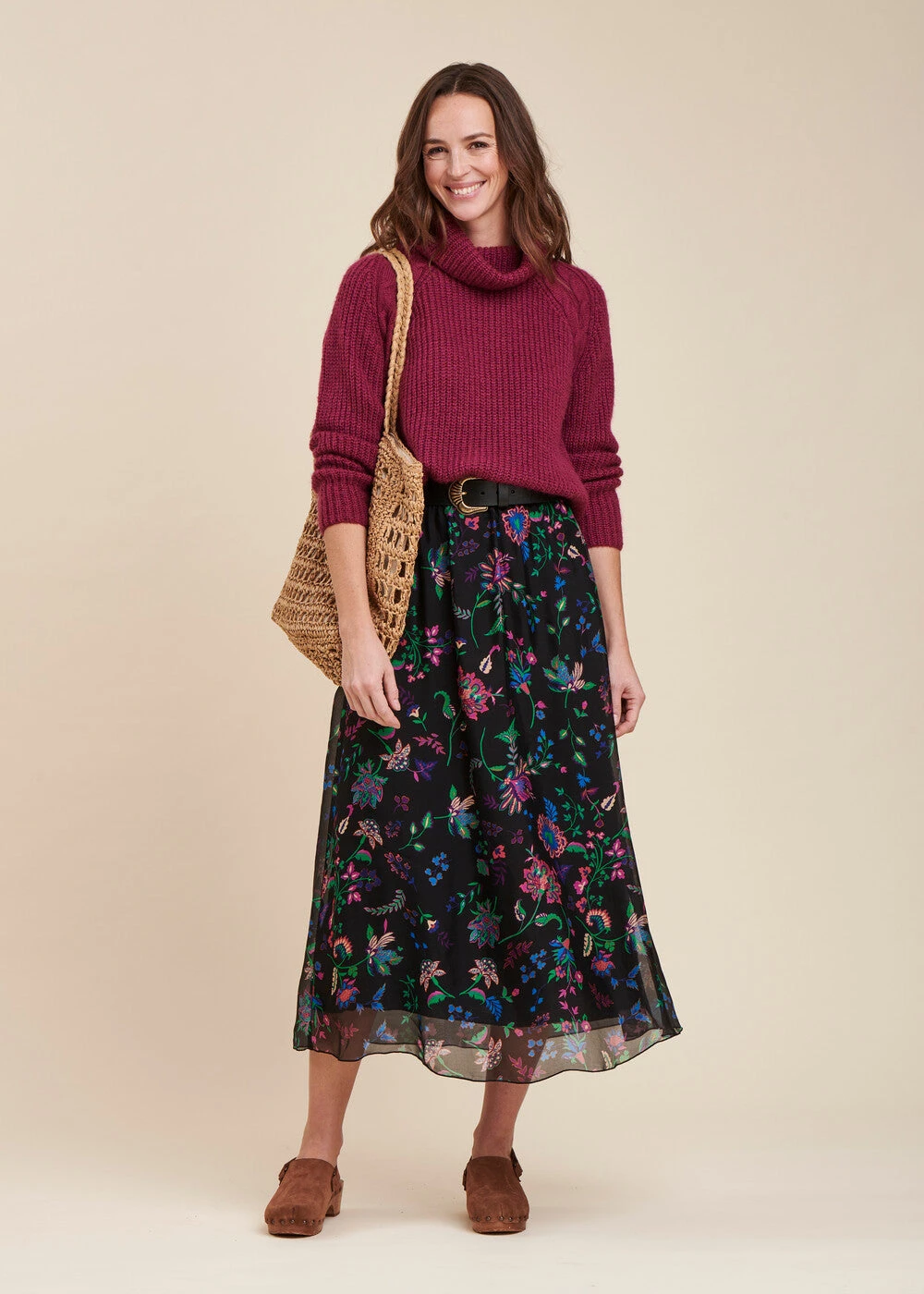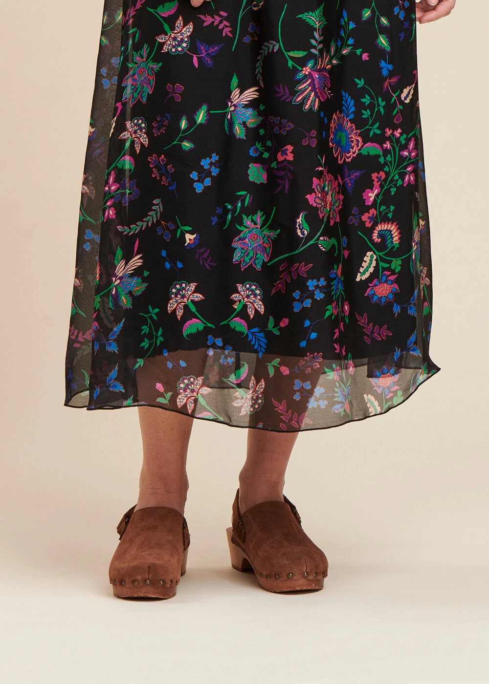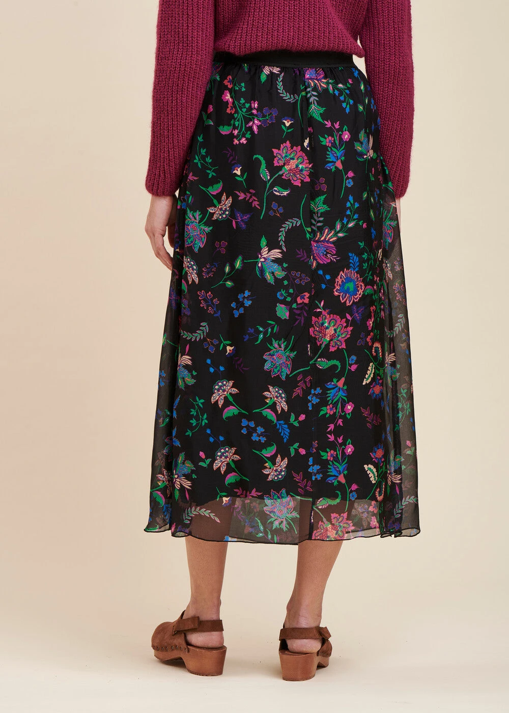 – Jupe longue à fleurs de cérémonie en voile de viscose soie