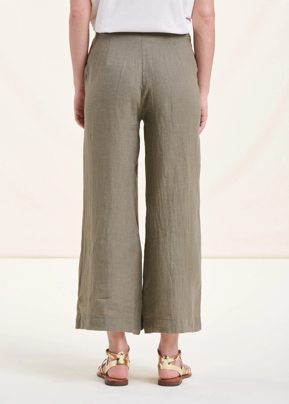 Pantalon Ample Kaki En Lin