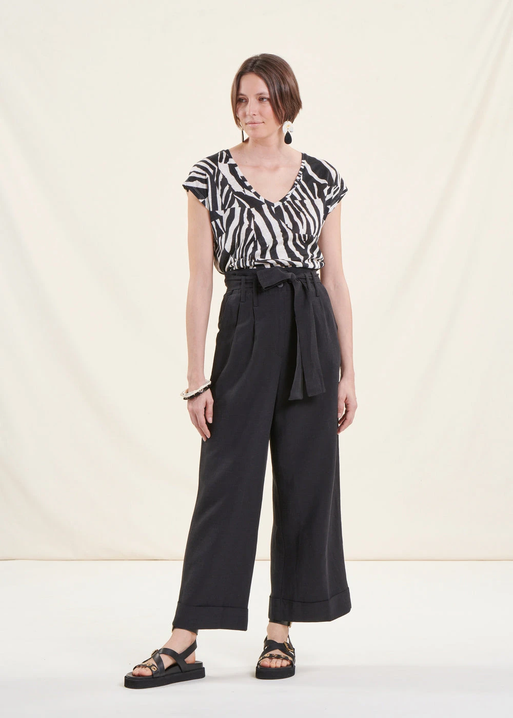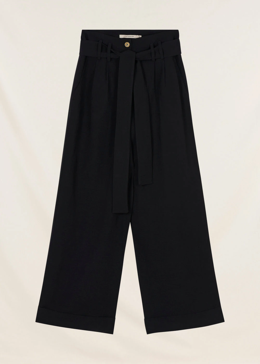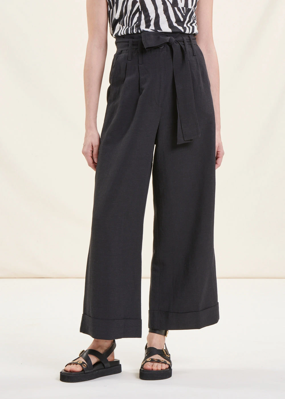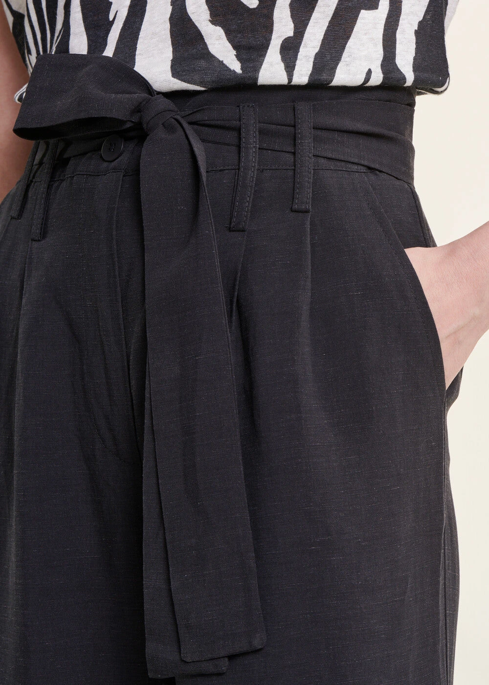 Pantalon Ample Noir Taille Haute En Viscose Lin