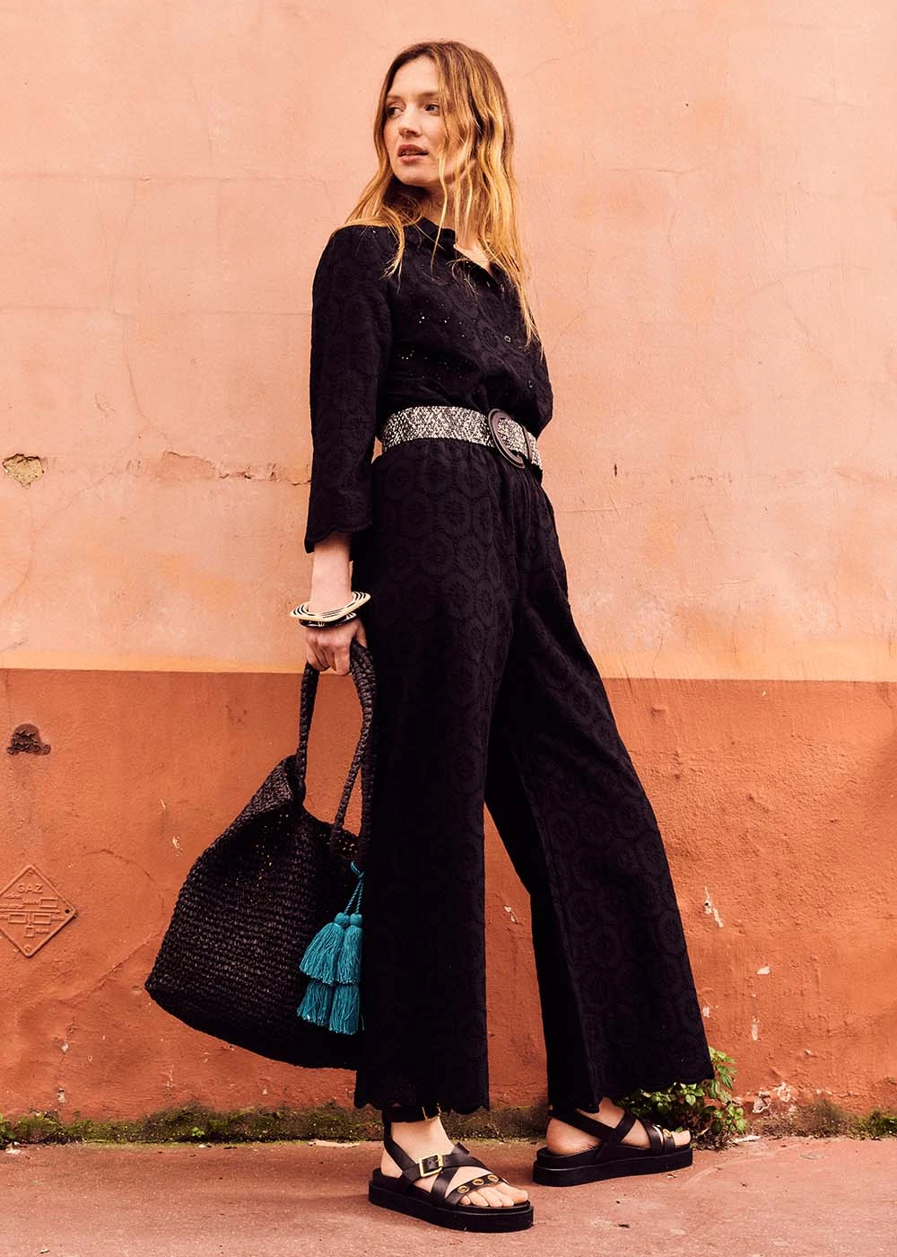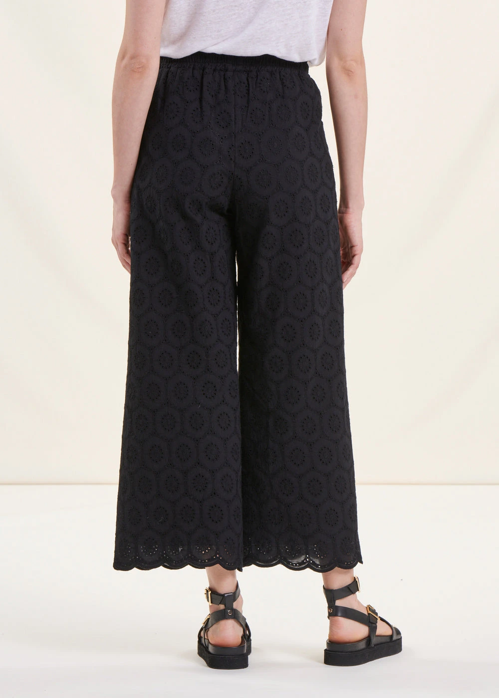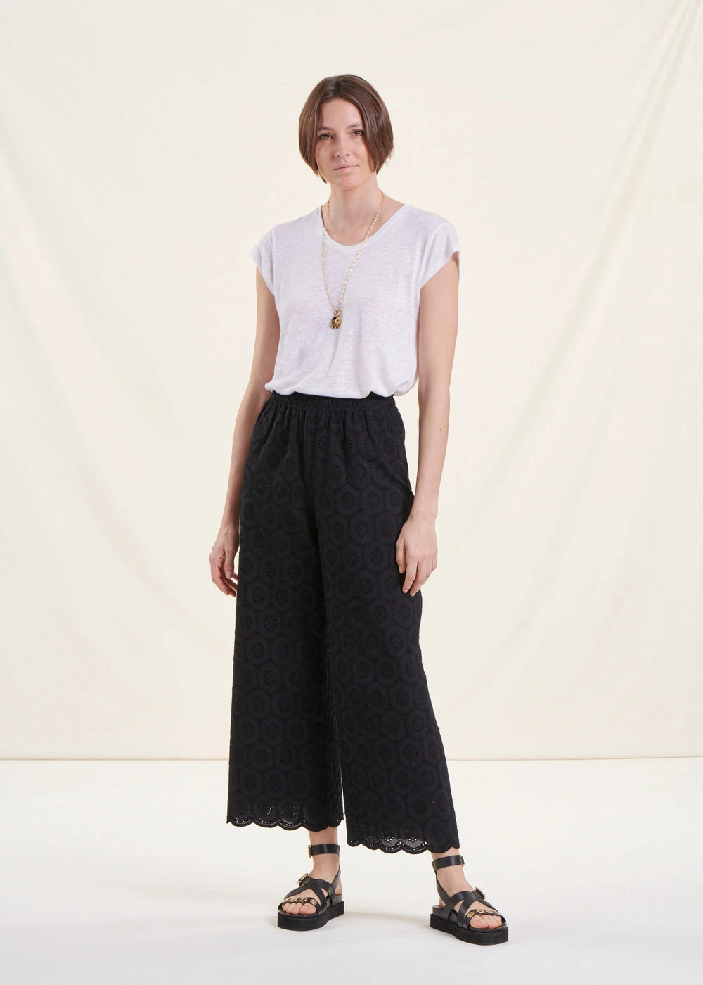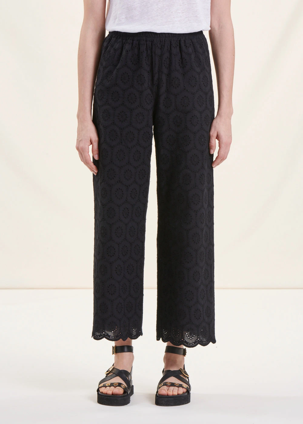 Pantalon Droit Noir En Broderie Anglaise Taille élastique