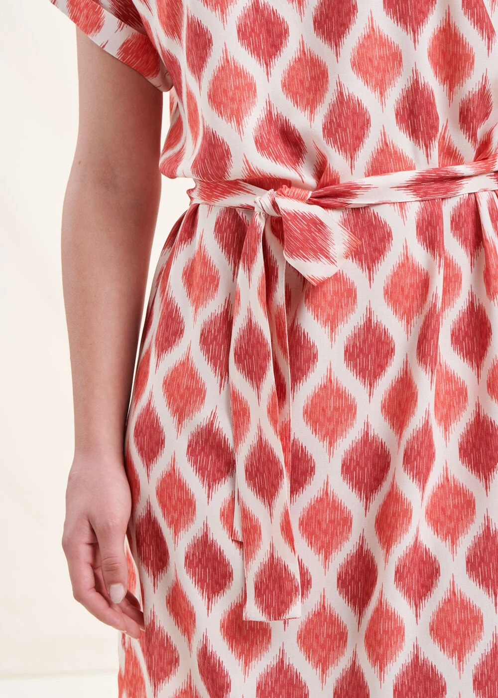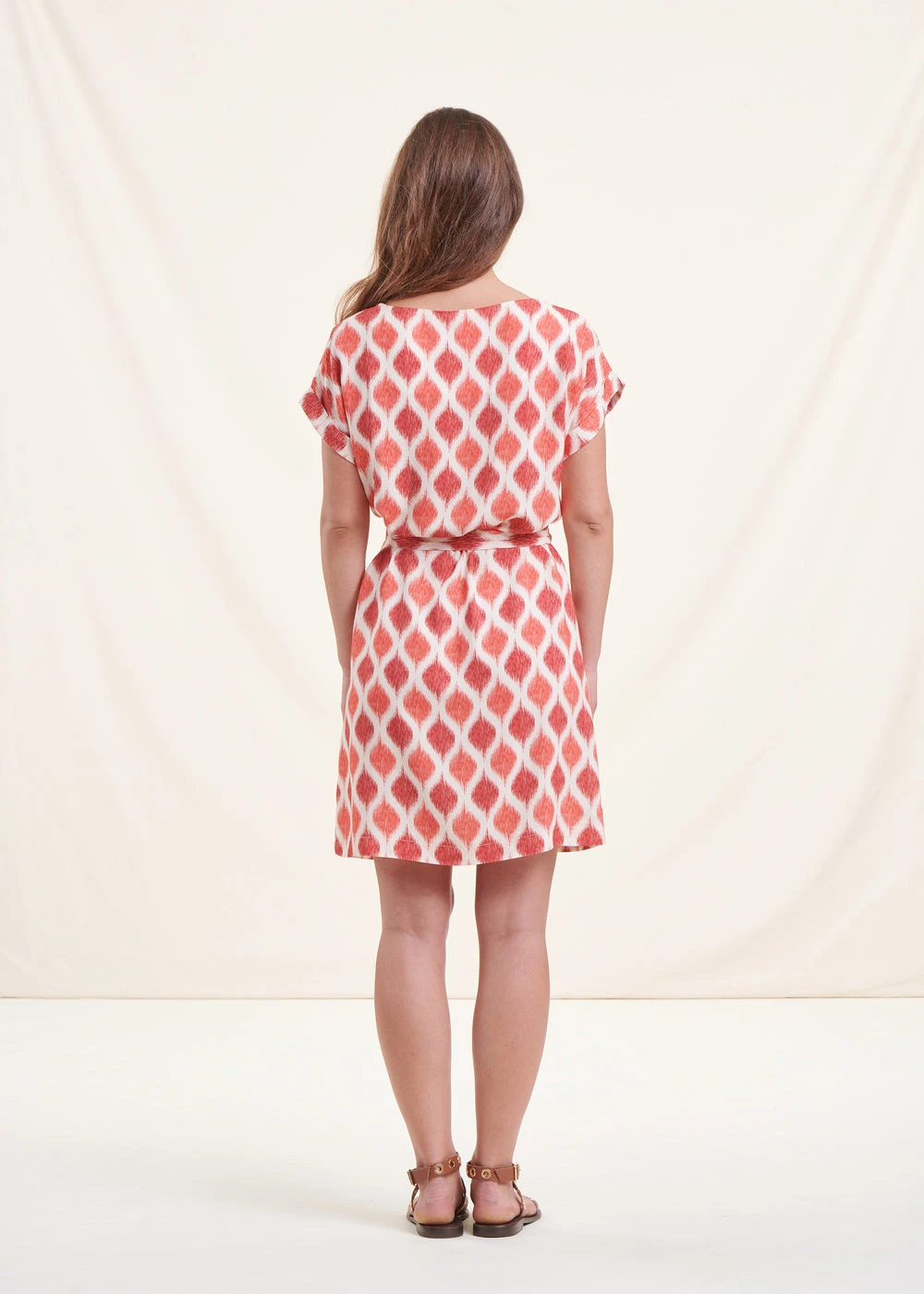 Robe Courte Corail Manches Courtes Et Encolure Bateau