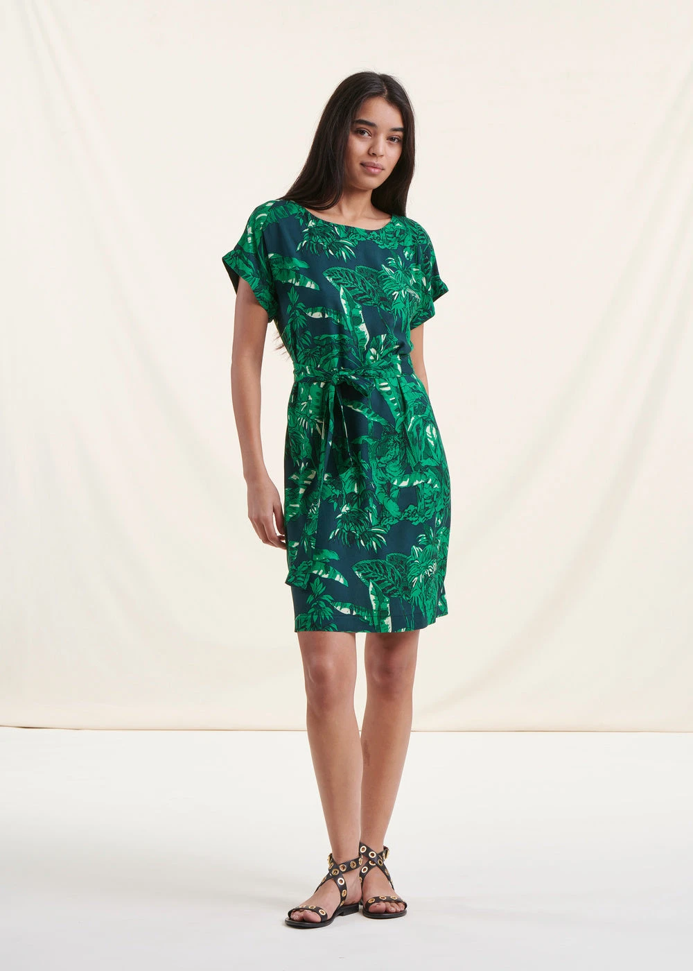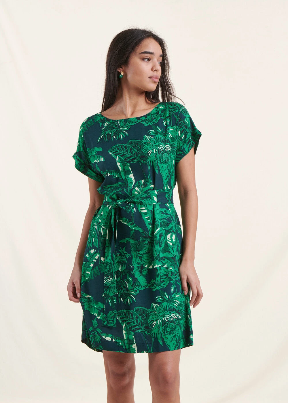 Robe Courte Verte Manches Courtes Et Encolure Bateau
