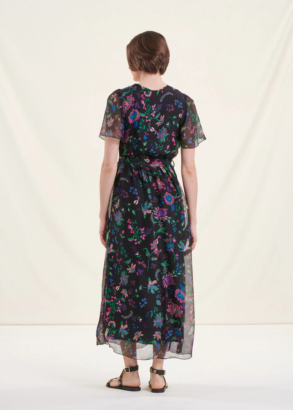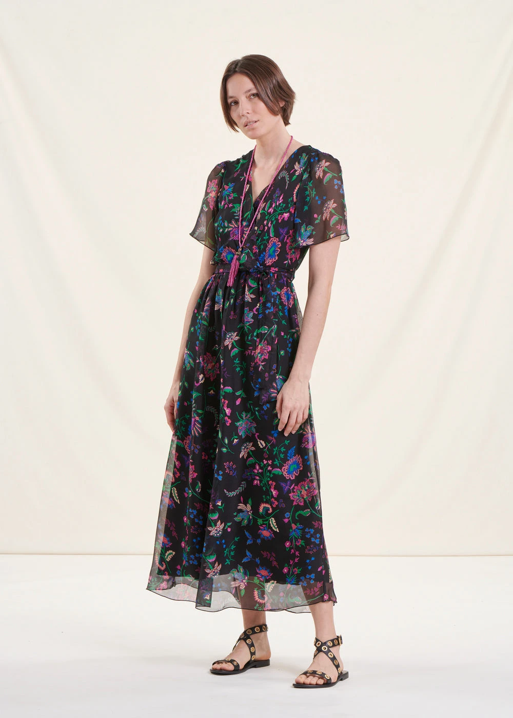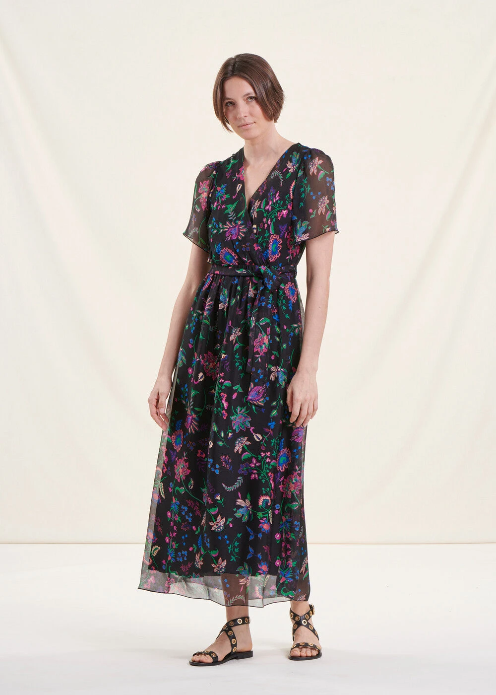 – Robe longue à fleurs de cérémonie en voile de viscose soie