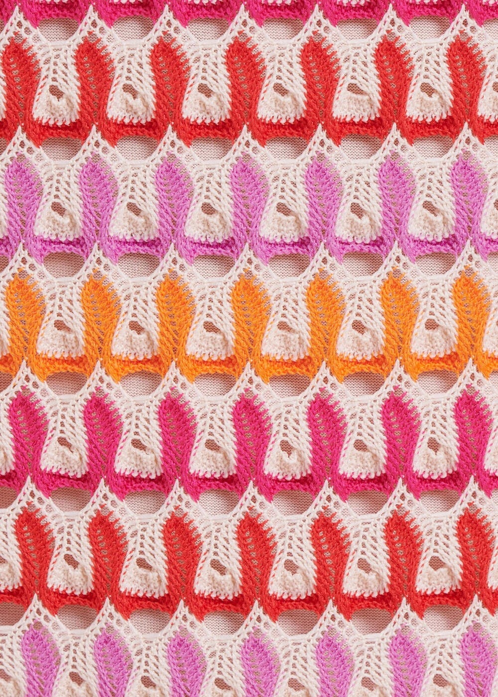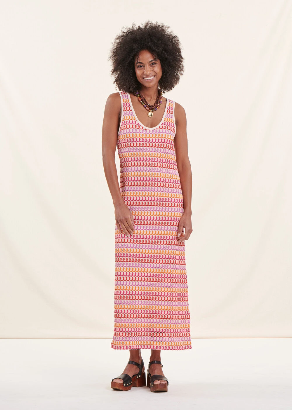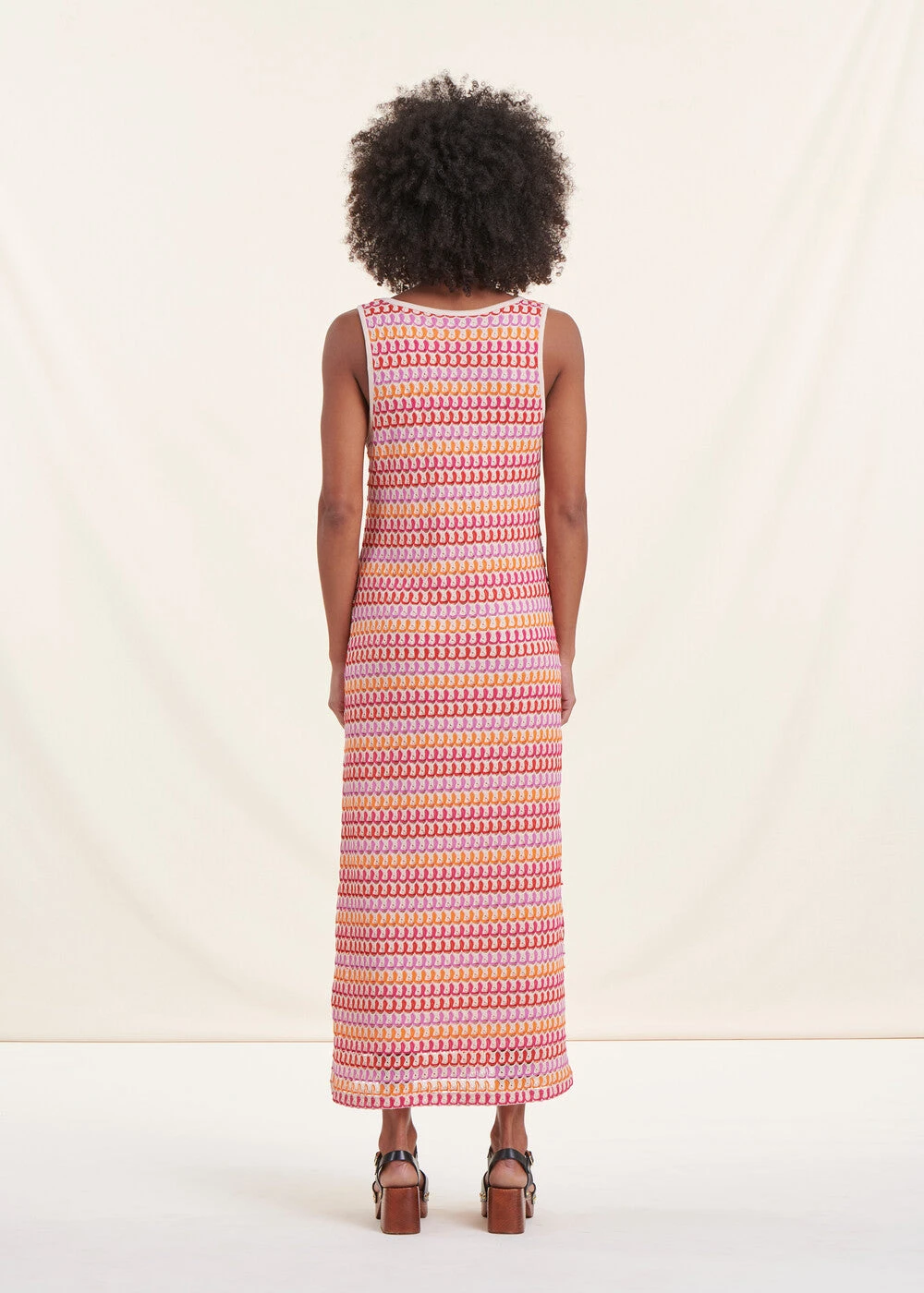 Robe Longue En Crochet Multicolore Orange Sans Manches