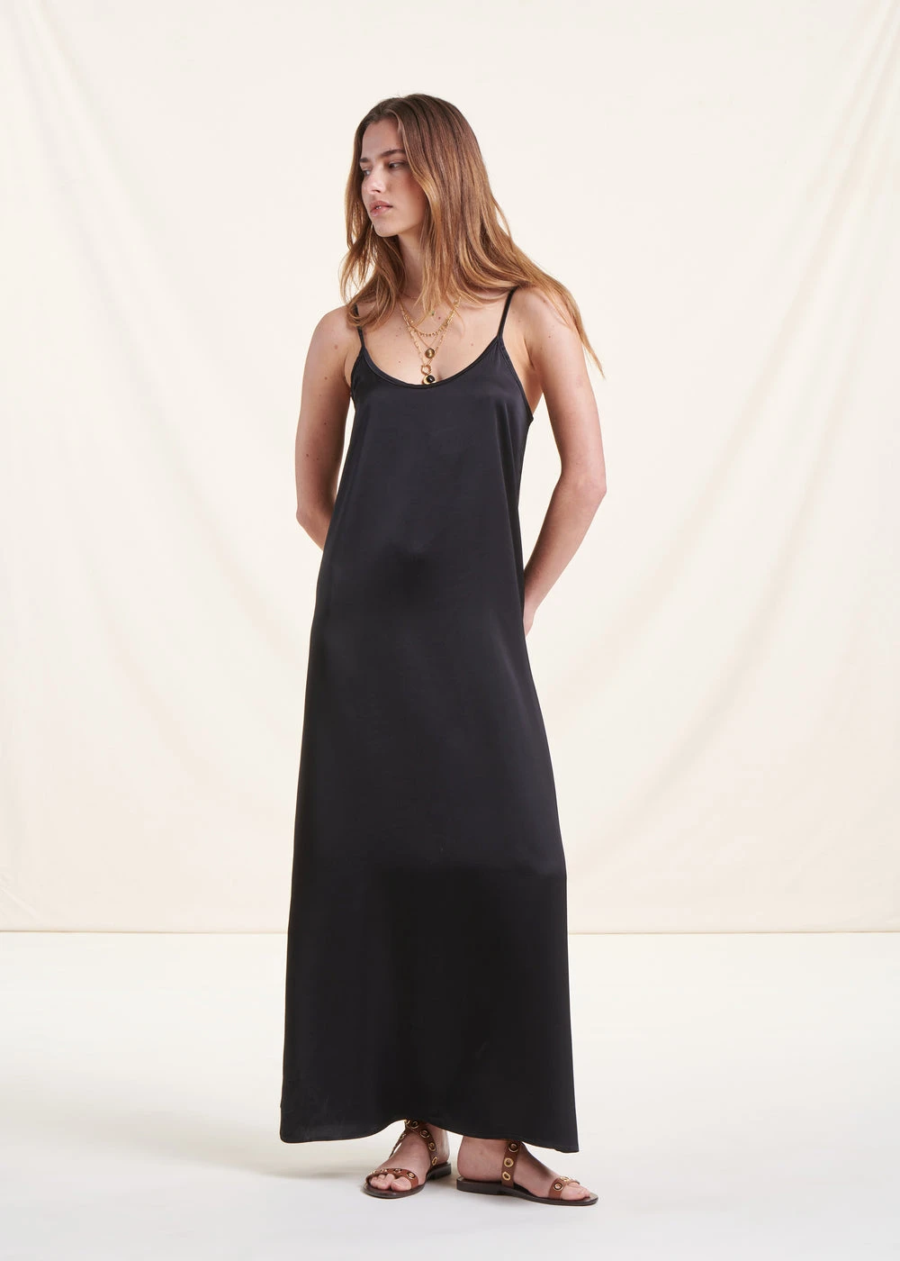 – Robe longue en satin de viscose