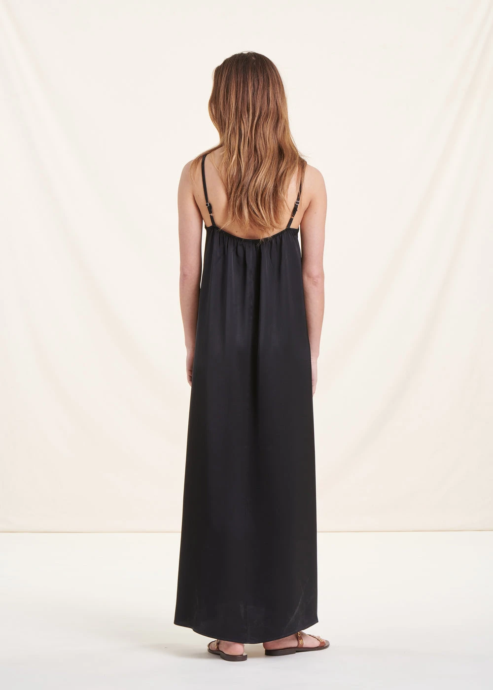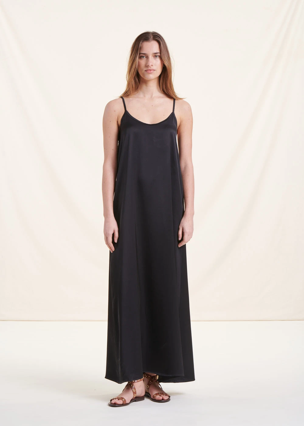 Robe Longue Fluide Noire En Satin à Bretelles