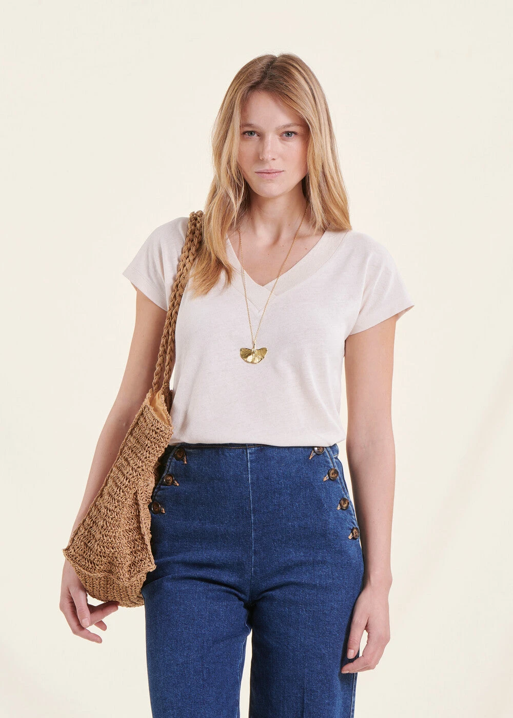 UGS : BGFMZ 867636854818641644355 Catégorie : Tops & T-shirts Étiquettes : Apparel_specific|TEE SHIRT, Categorie|Tops & T-shirts, Color_filter|blanc, Color|ECRU, E24_HAUTS, E24_NOIR_BLANC, EuropeE24, EXCLUSION_BOOSTER_H23, FD-TS-PASTUREL_703, NEW_PRODUCT, NOUVELLE_COLLECTION, PAP, S15, Season|E24, SEO_HAUT_MANCHES_COURTES, SEO_TEE_SHIRT_COL_V, SEO_TEE_SHIRT_MANCHES_COURTES, Size_filter|34, Size_filter|36, Size_filter|38, Size_filter|40, Size_filter|42, Tops_tshirts