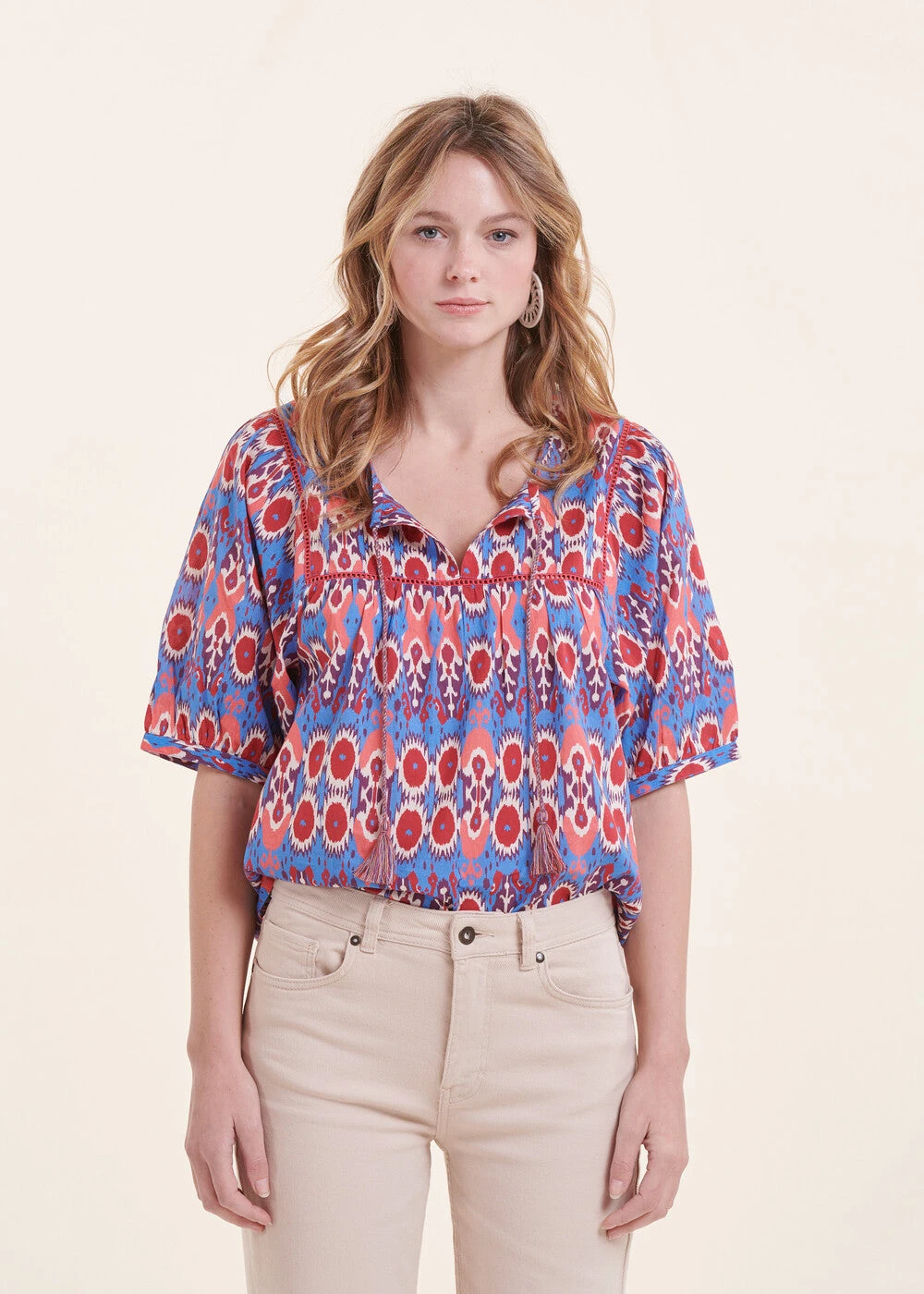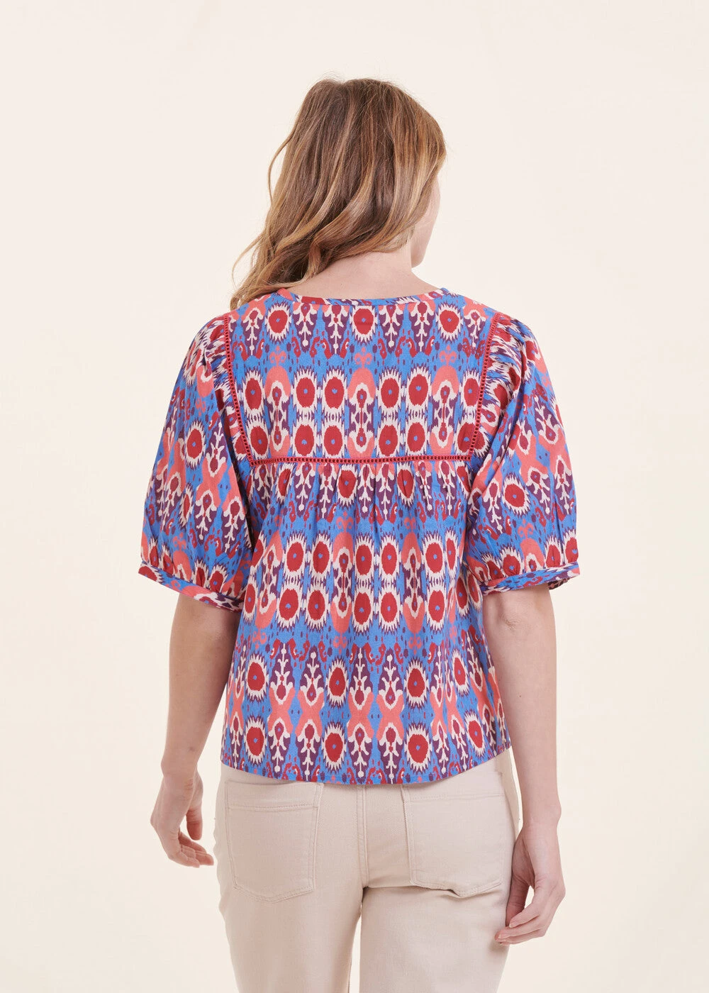 Top Ample Bleu Et Rose En Coton Biologique Imprimé