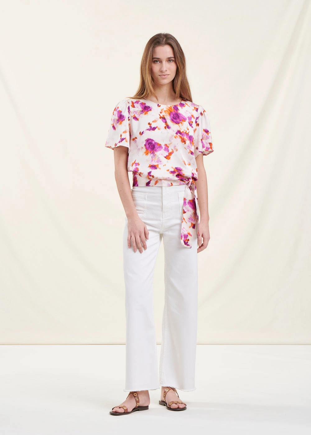 Top Ample Manches Courtes Fleuri Encolure Ronde