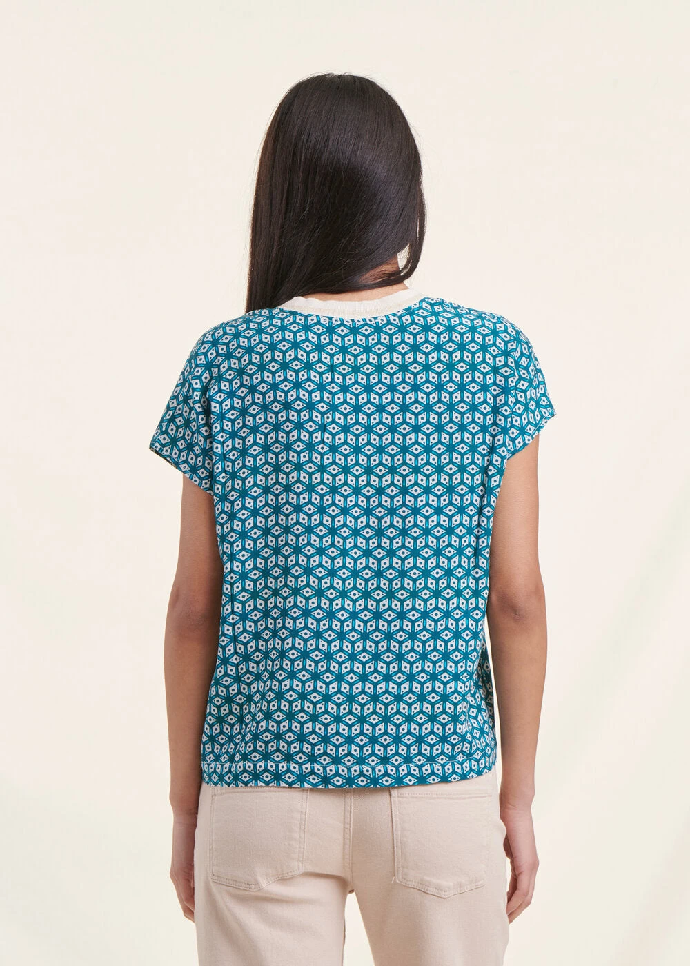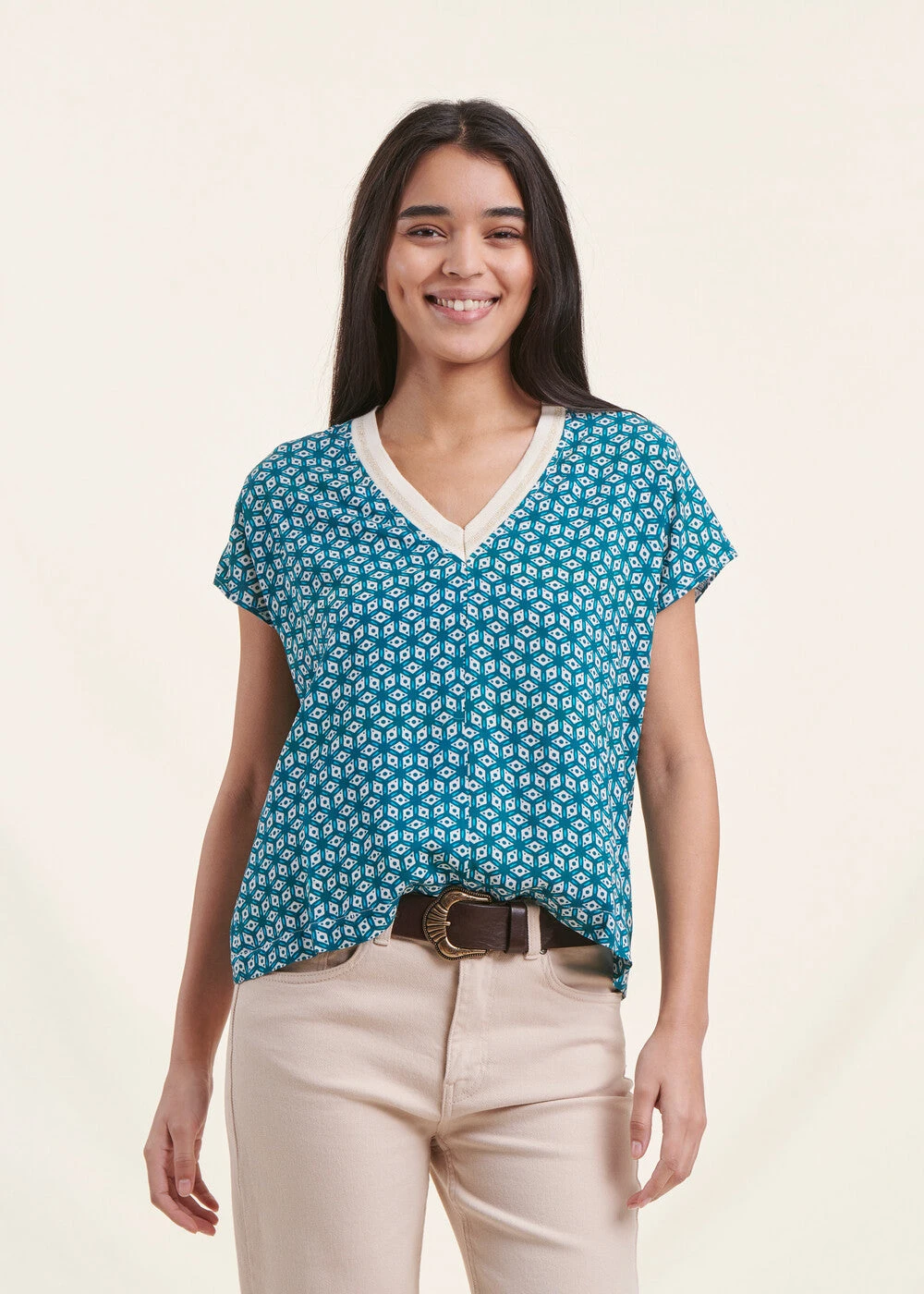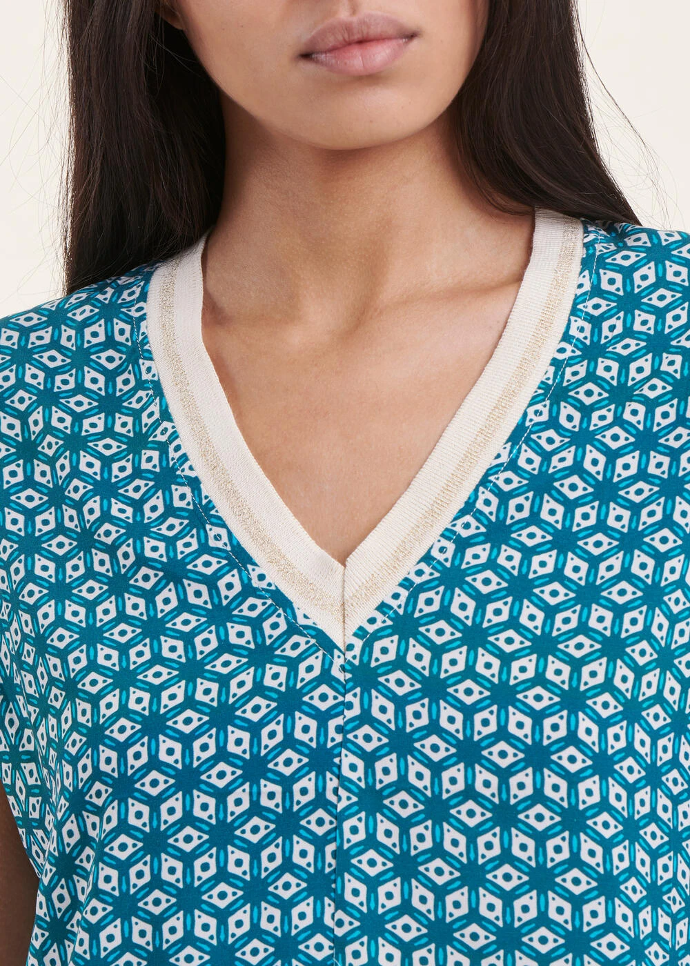 Top Bleu Pétrole à Manches Courtes Imprimé Graphique
