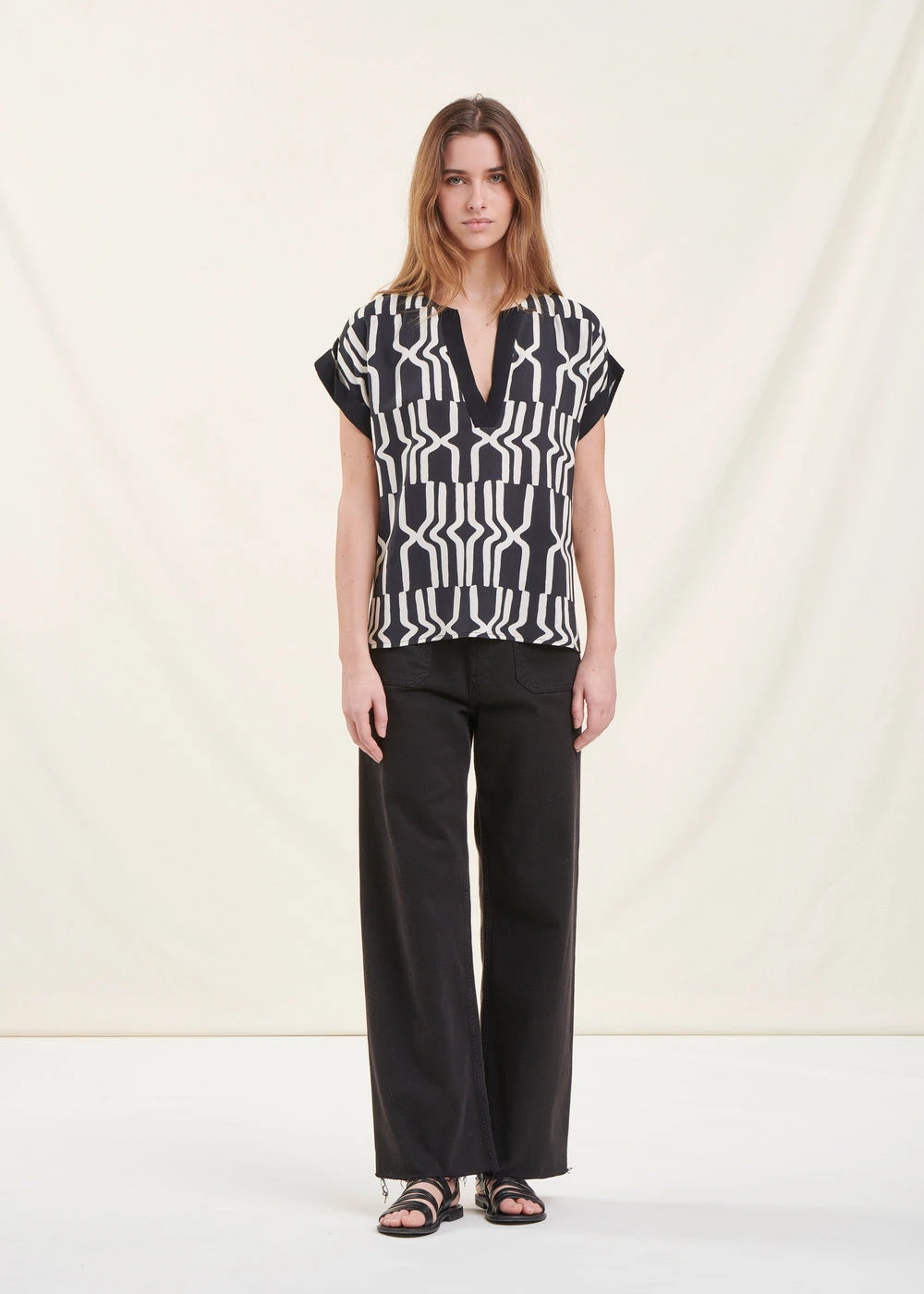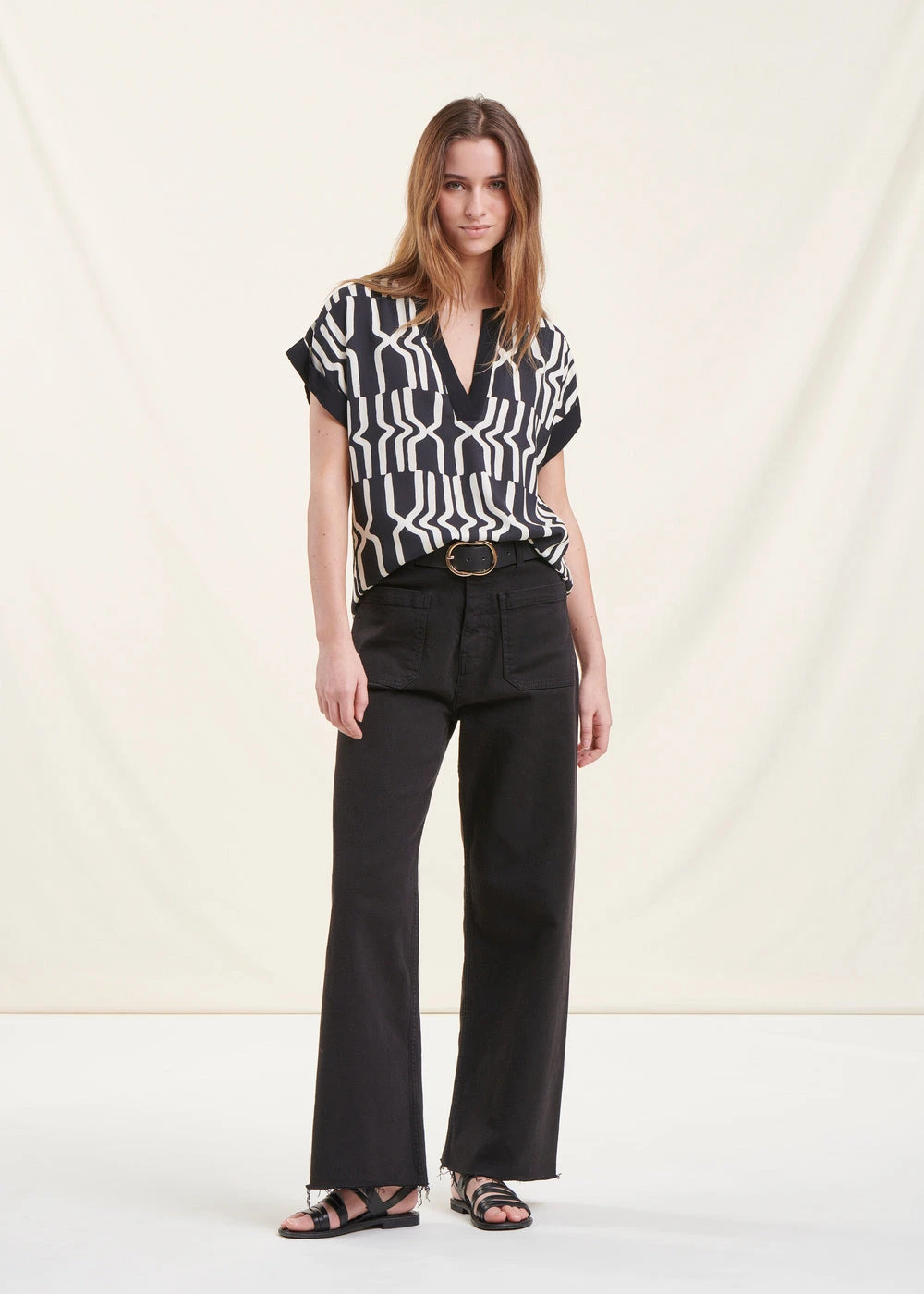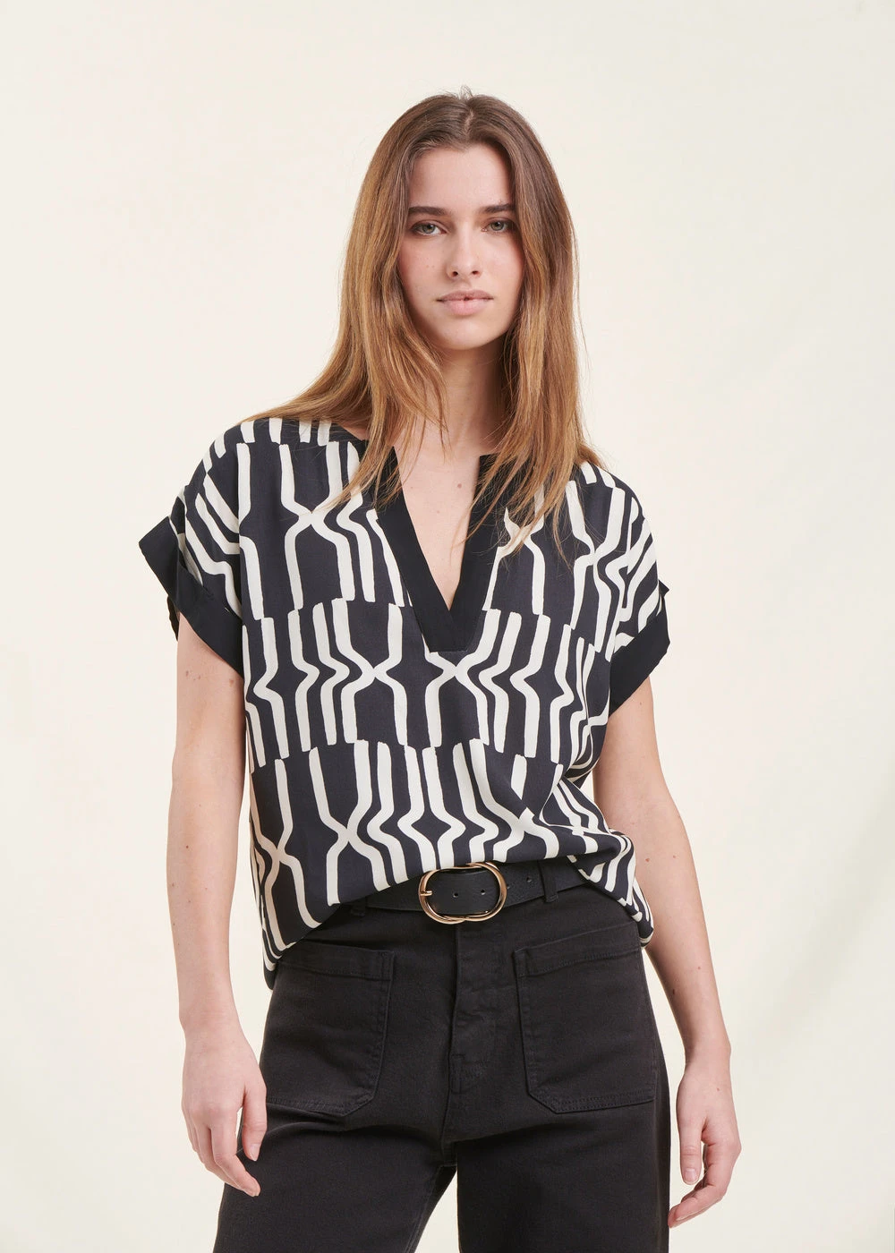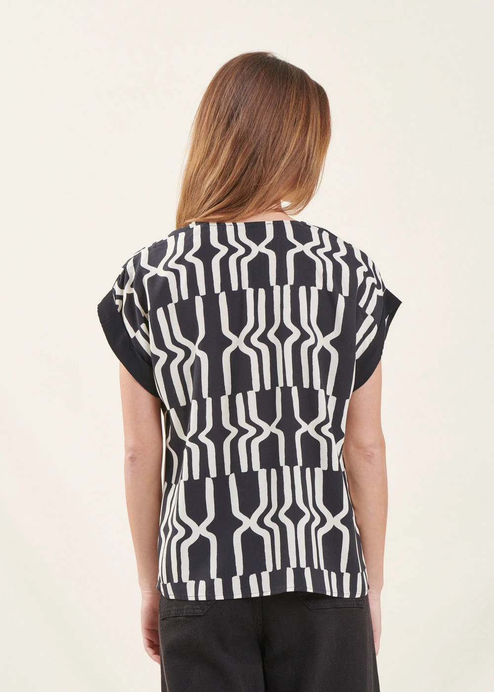 UGS : BGFMZ 873353825519453500224 Catégorie : Tops & T-shirts Étiquettes : Apparel_specific|TOPS / BLOUSES, Categorie|Tops & T-shirts, Color_filter|noir, Color|NOIR/BLANC, E24_ECOVERO, E24_HAUTS, EcoE24, EXCLUSION_BOOSTER_H23, FH-TO-VIGOA-G_120, JM_E24, NEW_PRODUCT, NOUVELLE_COLLECTION, OFFRES_PRIVILEGES_E24, OP|-30%, PAP, S10, Season|E24, SEO_HAUT_MANCHES_COURTES, Size_filter|34, Size_filter|36, Size_filter|38, Size_filter|40, Size_filter|42, Size_filter|44, Size_filter|46, Tops_tshirts